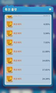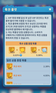 | 목재 1천 개(랜덤 20~100개) | 3.325% |